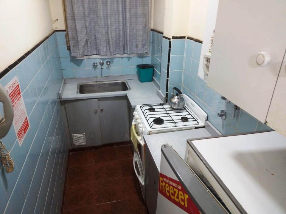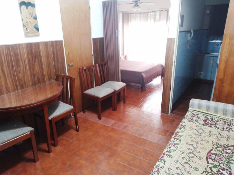 El inmueble dispone de 30 m2 totales, living comedor con mesa y cuatro sillas, un sillón de dos cuerpos, habitacón a la calle con cama matrimonial y TV, con acceso al balcón saliente desde el primer piso. Baño completo con bañera y mampara. Cocina separada con ventilación natural.