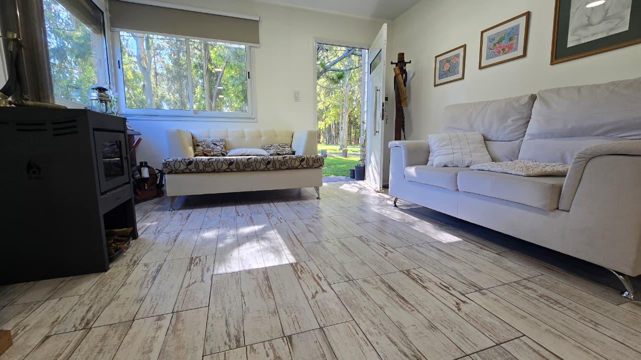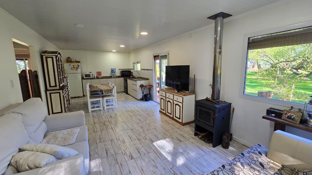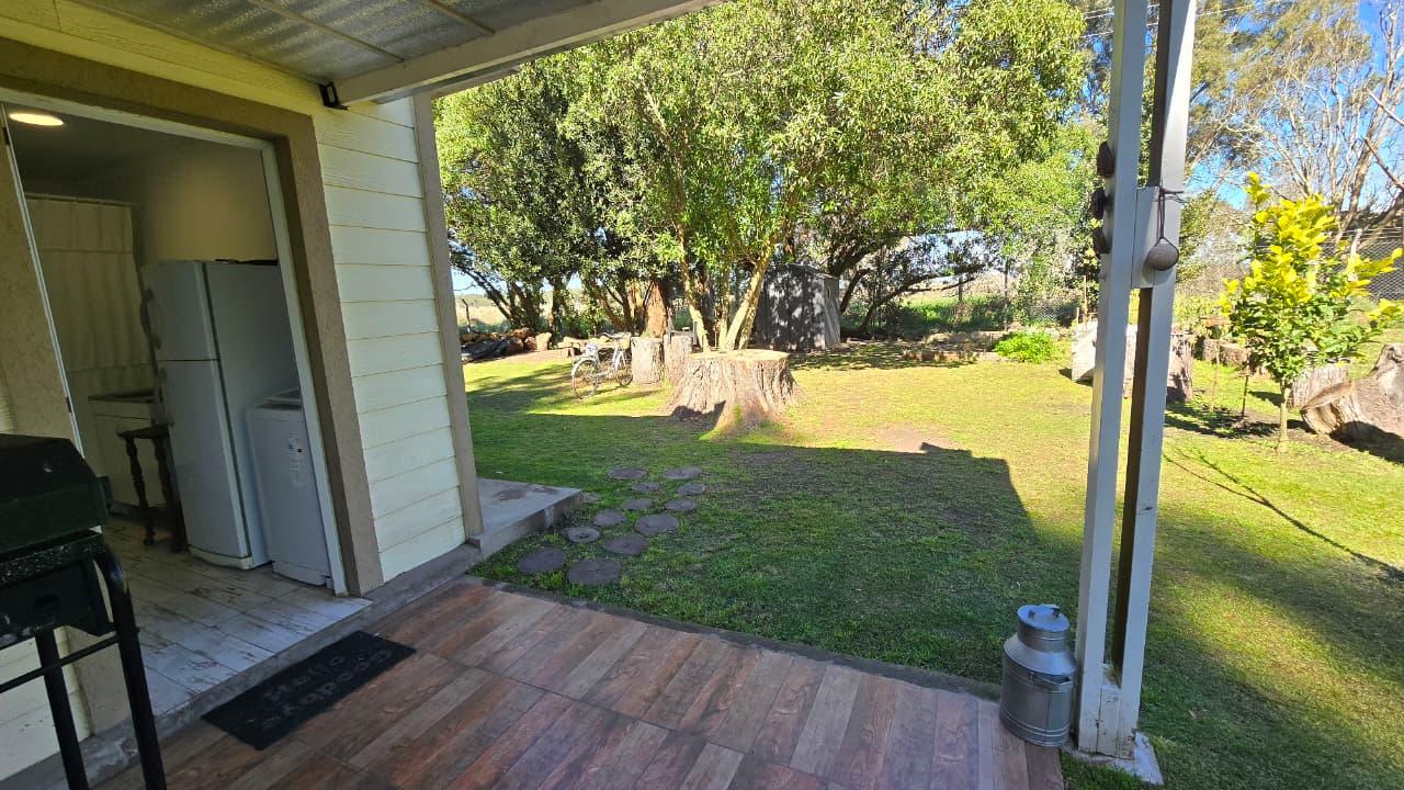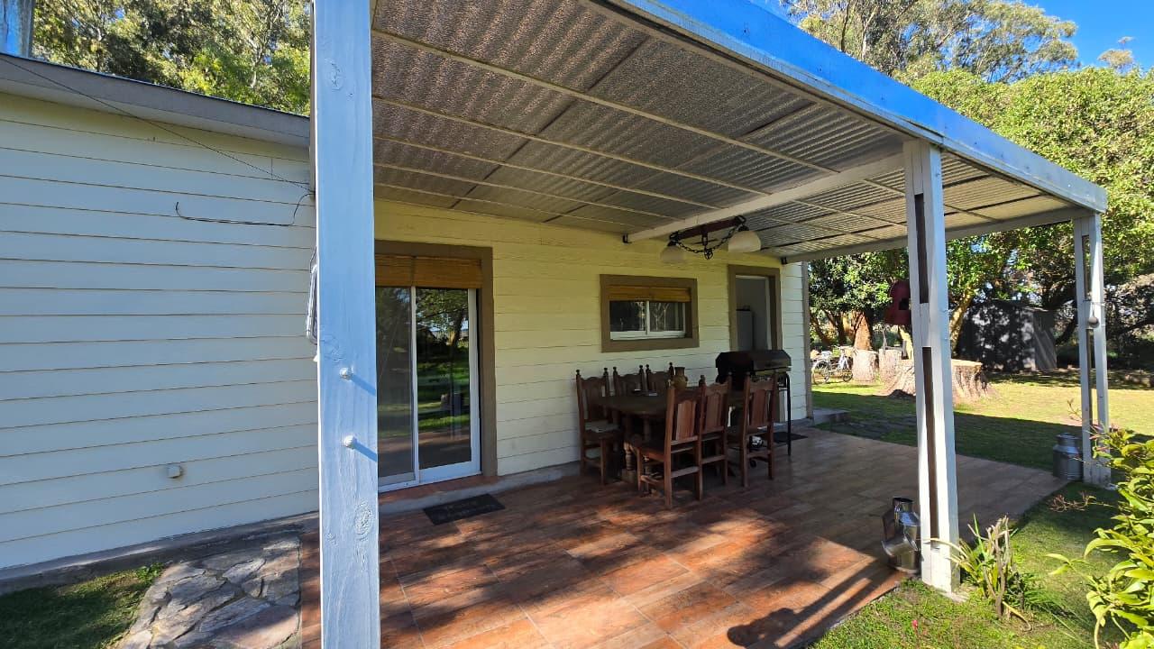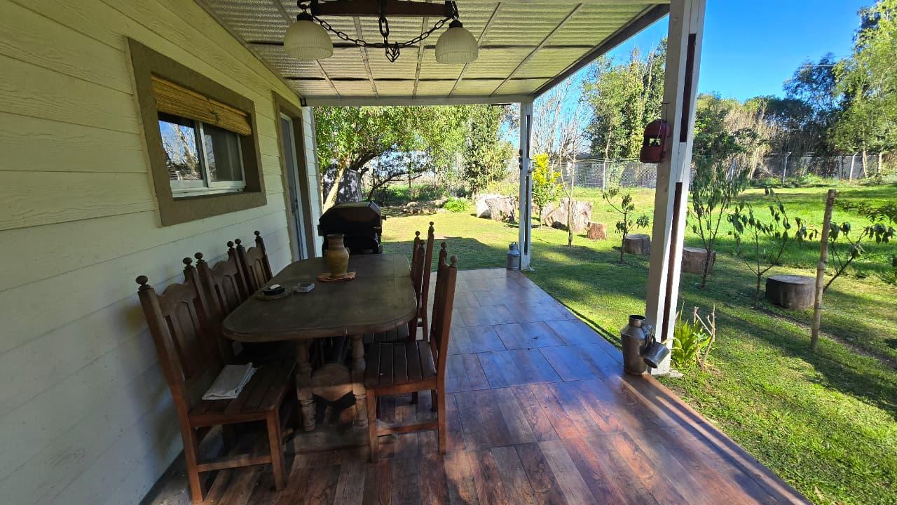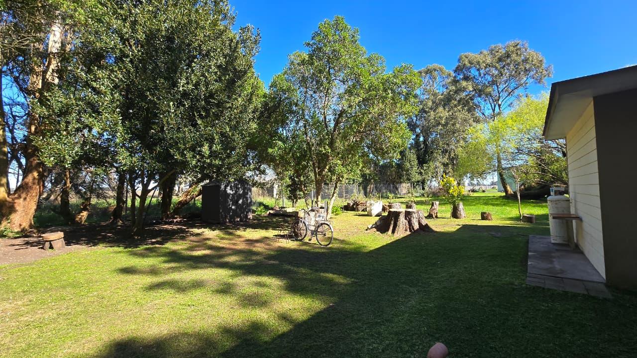 Amplio parque, pérgola para guardado de vehículo. Jardín al frente. Gabinete de guardado. Calefacción a leña. Pisos en cerámicos simil madera. Carpintería DVH. Gas envasado. Excelente estado general.
