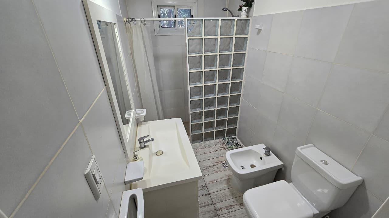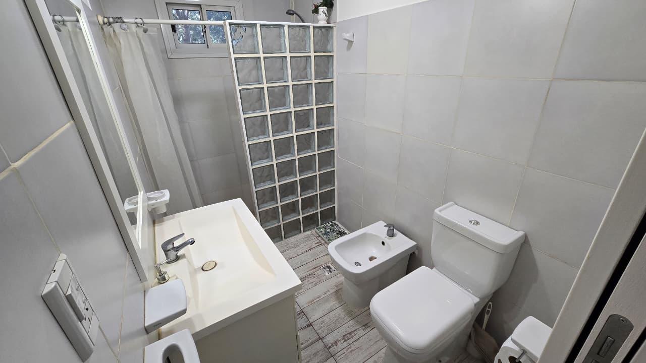 Pasillo de distribución, con acceso a baño y dormitorios; el baño con ventilación natural, con ducha y mampara de ladrillos de vidrio. Dormitorio principal a la calle con ventanal y dormitorio secundario al contrafrente.