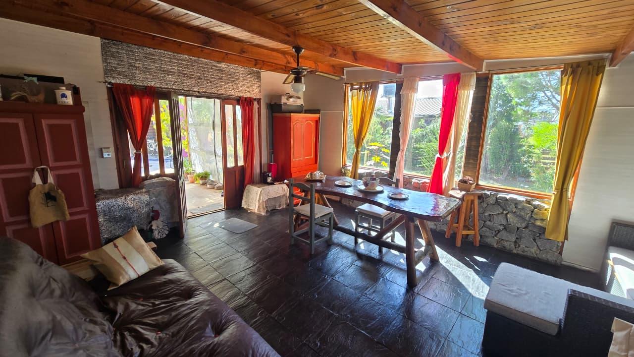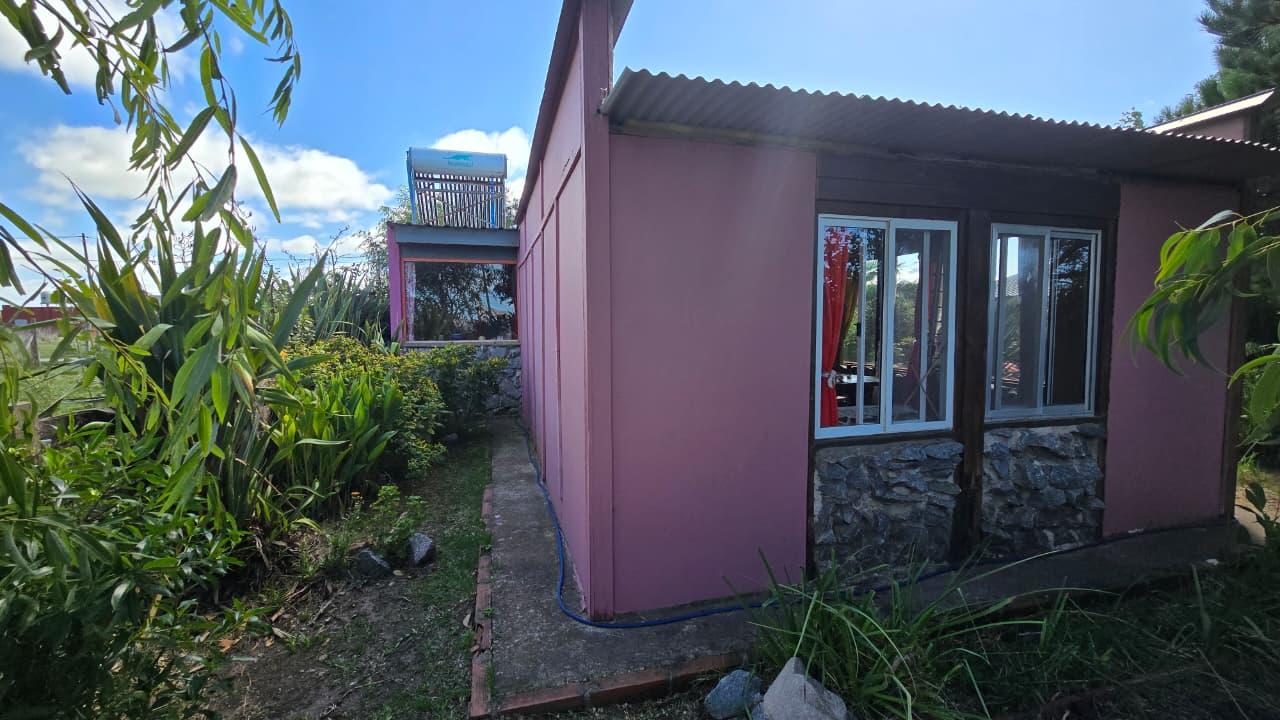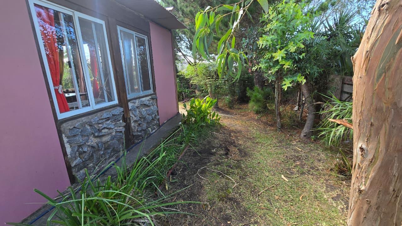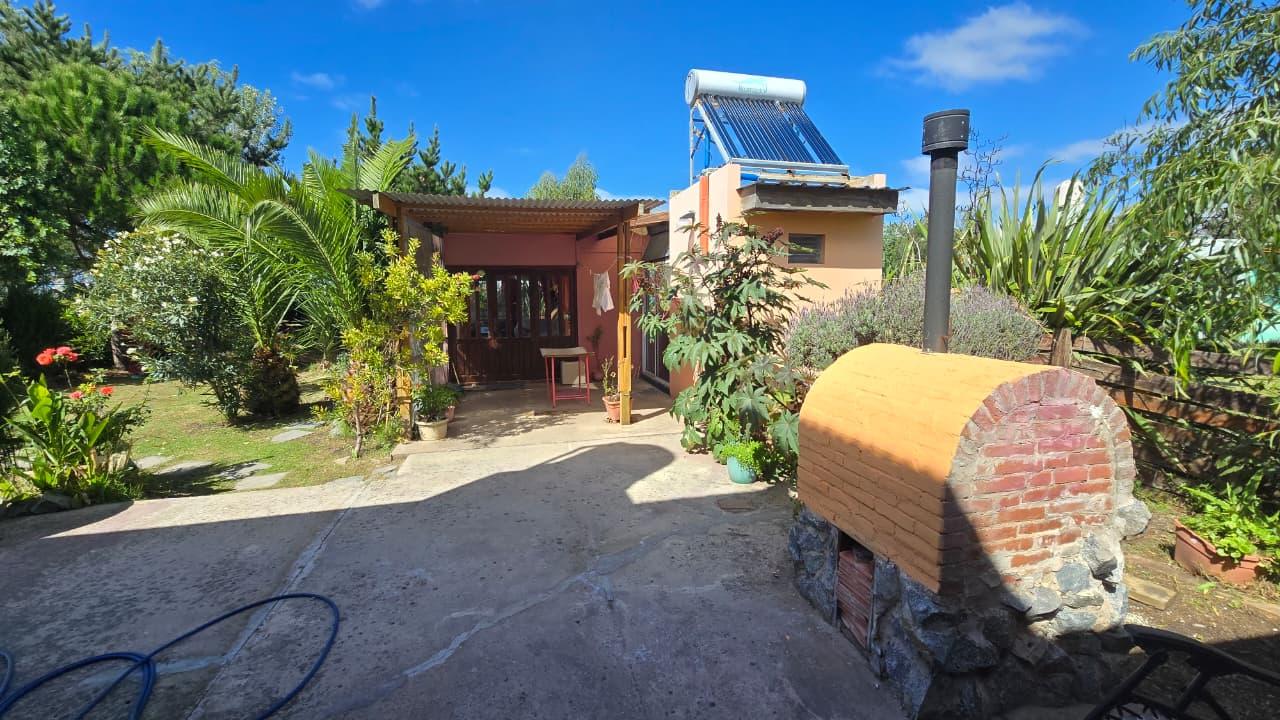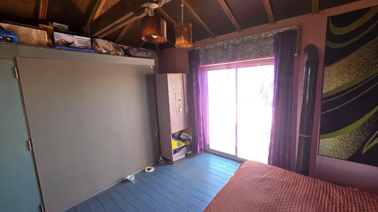 Ademas dispone de cabaña de 5 mts x 6 mts, muy luminosa con baño, cocina y equipo de panel solar.