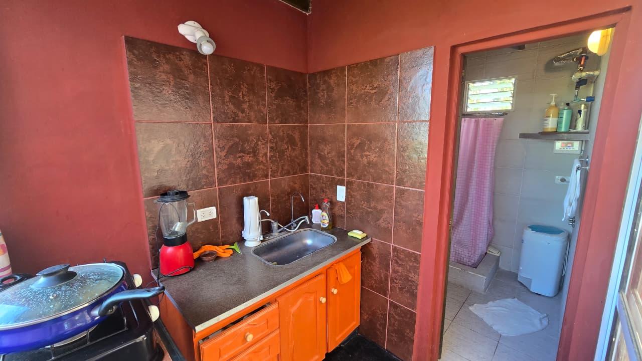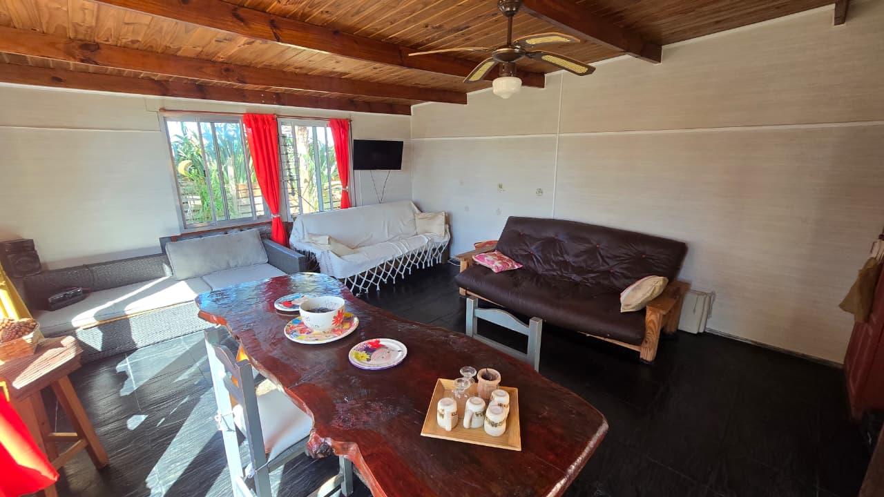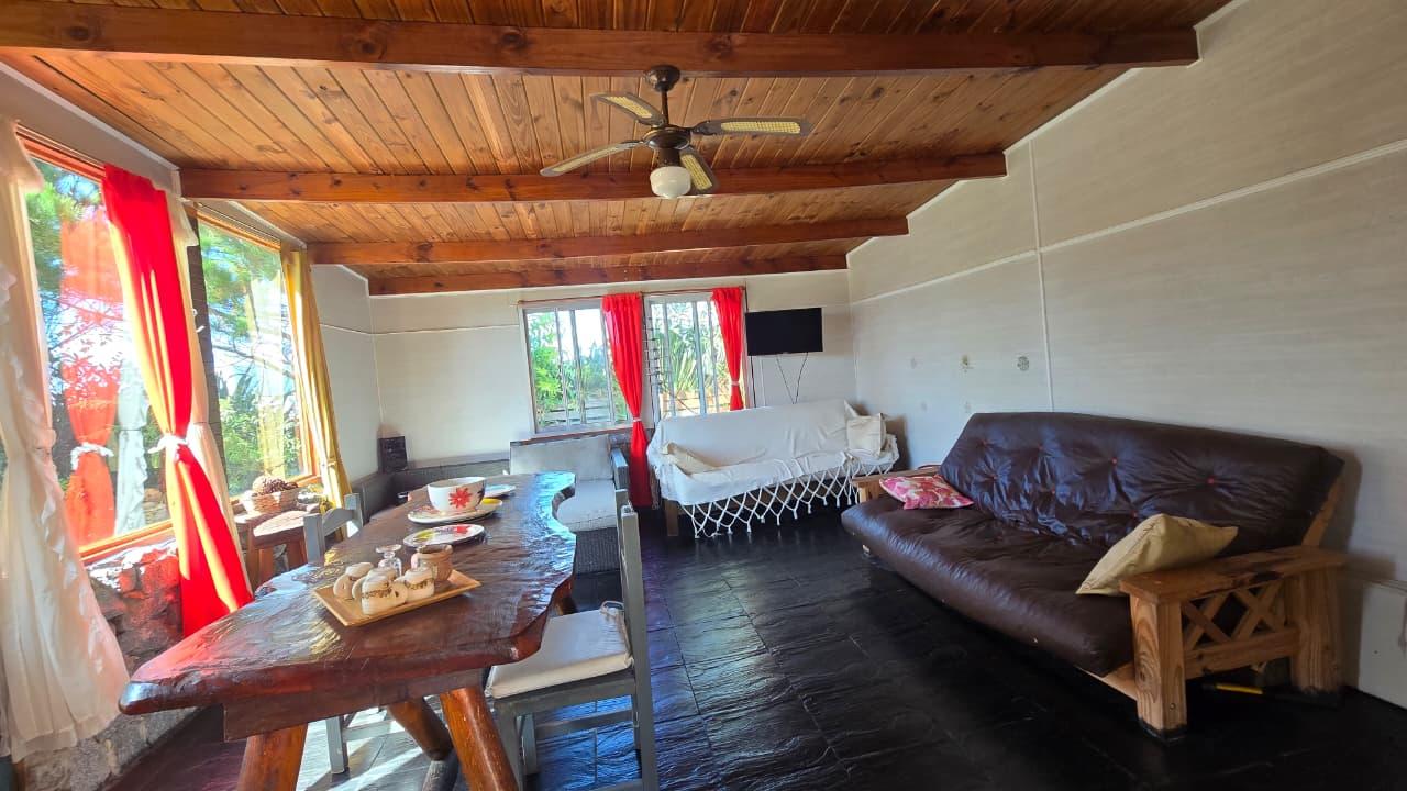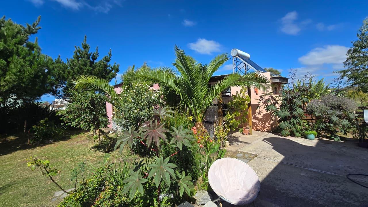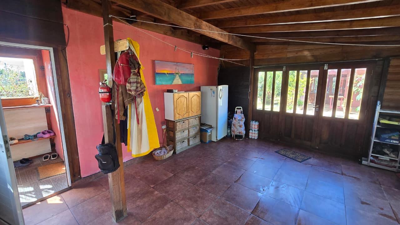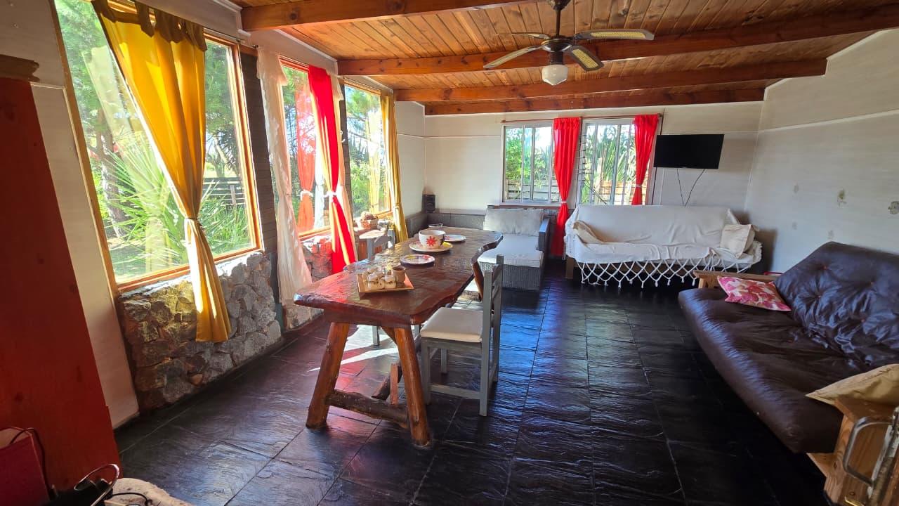 Ademas dispone de cabaña de 5 mts x 6 mts, muy luminosa con baño, cocina y equipo de panel solar.